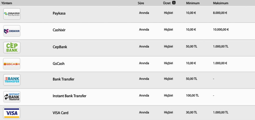 Visa kartınız ile Bahisbet sitesine minimum 30 tl, maksimum 1000 tl yatırım yapabilirsiniz. Yatırım talebi anında sonuçlandırılmaktadır.